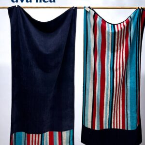 Osvežite svoj letnji stil uz elegantni peškir Ocean Stripe dimenzija 164×87 cm, inspirisan nijansama mora i plavih dubina. Sa vertikalnim prugama u tonovima tamnoplave, tirkizne i svetloplave, ovaj peškir donosi moderan i sofisticiran izgled savršen za plažu, bazen ili spa trenutke.
