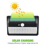 - Vanjska solarna zidna lampa napravljena je od udarnih ABS+PC i fotonaponskih panela od polikristalnog silicijuma, koji mogu svetliti celu noć (8-10 sati) primajući dnevnu sunčevu svetlost i pružiti jako osvetljenje od sumraka do zore u skoro svim vremenskim uslovima