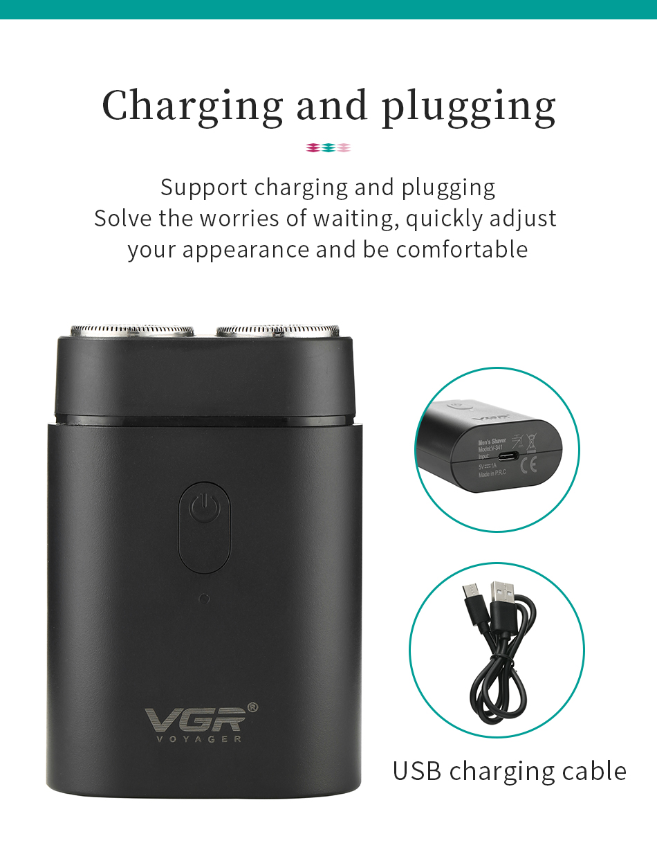 VGR 341 također dolazi sa praktičnim punjačem koji omogućava brzo i jednostavno punjenje. Zahvaljujući dugotrajnoj bateriji, možete uživati u bezbrižnom brijanju bez potrebe za čestim punjenjem.