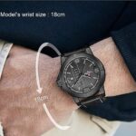 Sa svojim crnim kožnim kaišem i crnim brojčanikom, ovaj sat izgleda izuzetno sofisticirano i muževno. Njegov prečnik od 46mm čini ga dovoljno velikim da privuče pažnju, ali i dovoljno udobnim za nošenje tokom celog dana.