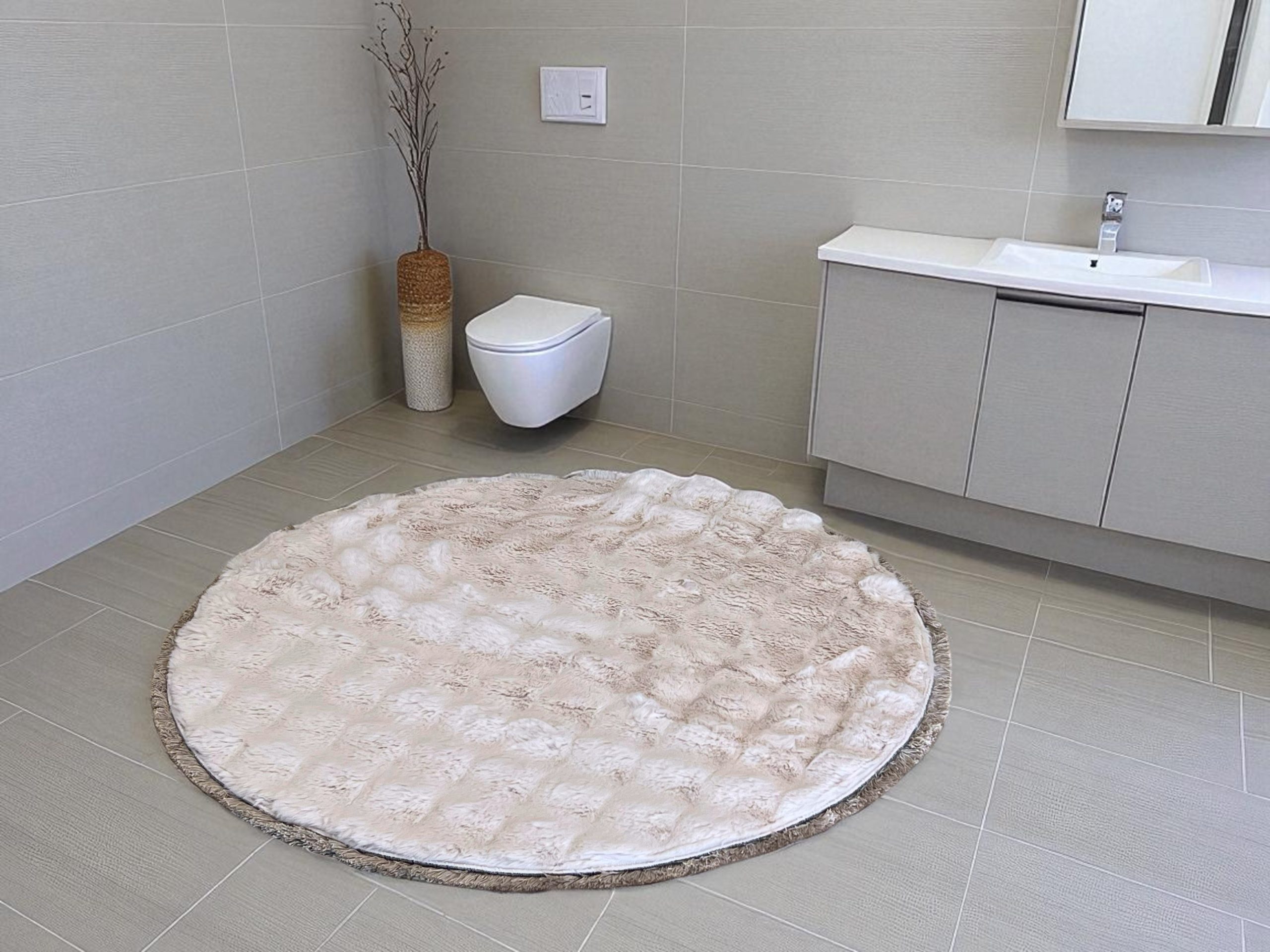 Unesite udobnost i sigurnost u svoje kupatilo uz našu okruglu prostirku prečnika 100 cm, izrađenu od kvalitetnog poliestera sa čupkavom površinom koja pruža mekoću pod stopalima i prijatan osećaj nakon tuširanja.