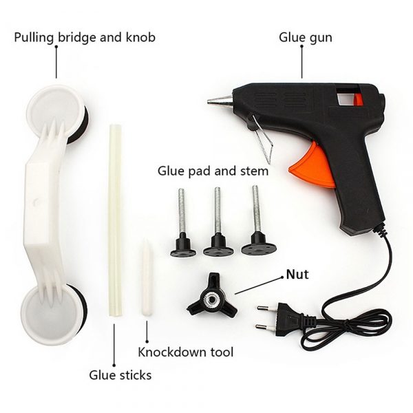 Praktično svaki vlasnik automobila u svom životu je suočen sa potrebom da ukloni male udubljenja u svom automobilu. Uklonite udubljenja koja ne zahtijevaju bojenje, na servisnoj stanici će trebati puno vremena, a troškovi će biti nerazumno skupi. Set je dizajniran tako da poravnava male udubljenja, sa neoštećenim slojem boje.