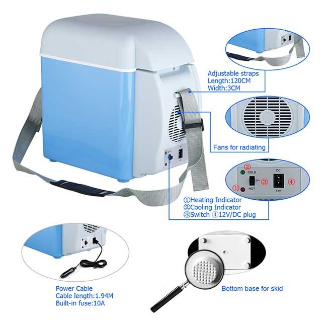 Sa duplim plastičnim zidovima i superiornom izolacijom, ovaj frižider garantuje optimalno zadržavanje temperature. Nudi zapreminu od 7,5L, savršenu za čuvanje vaših osnovnih namirnica. Frižider radi na snazi od 48W i lako se povezuje na 12V DC utičnicu vašeg vozila (priključak za auto upaljač). Sa dimenzijama od 31 x 29 x 17 cm i težinom od samo 2 kg, kompaktan je i lagan, što ga čini pogodnim za nošenje sa priloženim remenom od 120 x 3 cm.