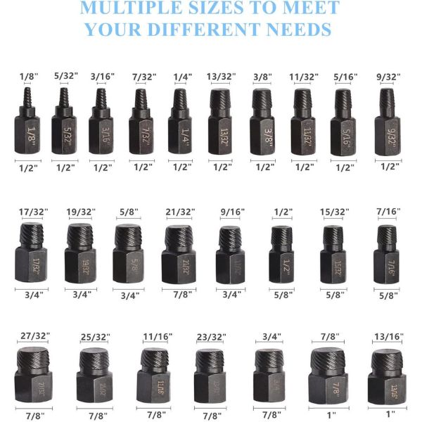 - 26PCS izvlakači slavina sve u jednom – dobro organizovana kutija za alate koja se lako prenosi teški razdelnik matica dizajniran za sigurno uklanjanje korodiranih ili oštećenih matica bez oštećenja navoja vijaka.