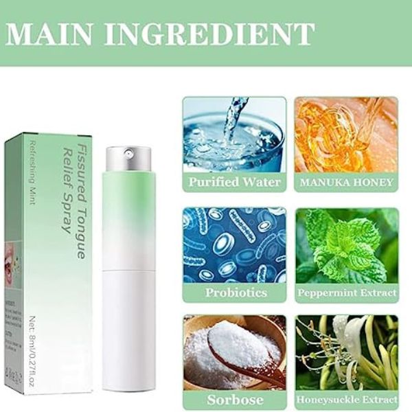 - Canada Polumna sprej za ublažavanje pukotina jezika je sprej koji može trenutno i kontinuirano da prilagodi PH jezika, reguliše oralno zdravlje, uništavajući uslove koji omogućavaju da štetni materijali cvetaju.