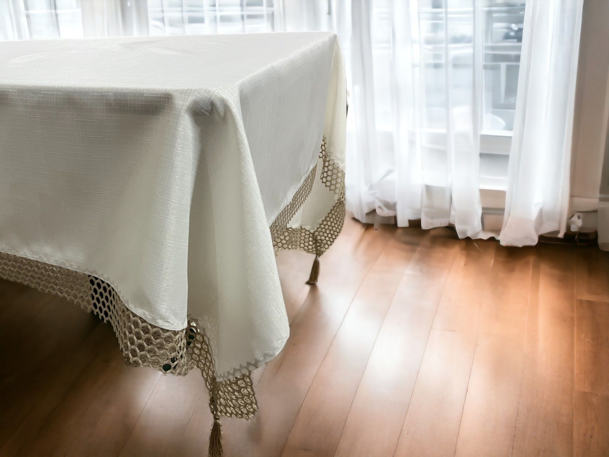 Izrađen od visokokvalitetnog materijala, ovaj stolnjak je izuzetno izdržljiv i otporan na habanje. Njegova meka tekstura pruža dodatnu udobnost i čini ga prijatnim za dodir. Takođe je veoma jednostavan za održavanje – može se prati u mašini za veš i lako se pegla.