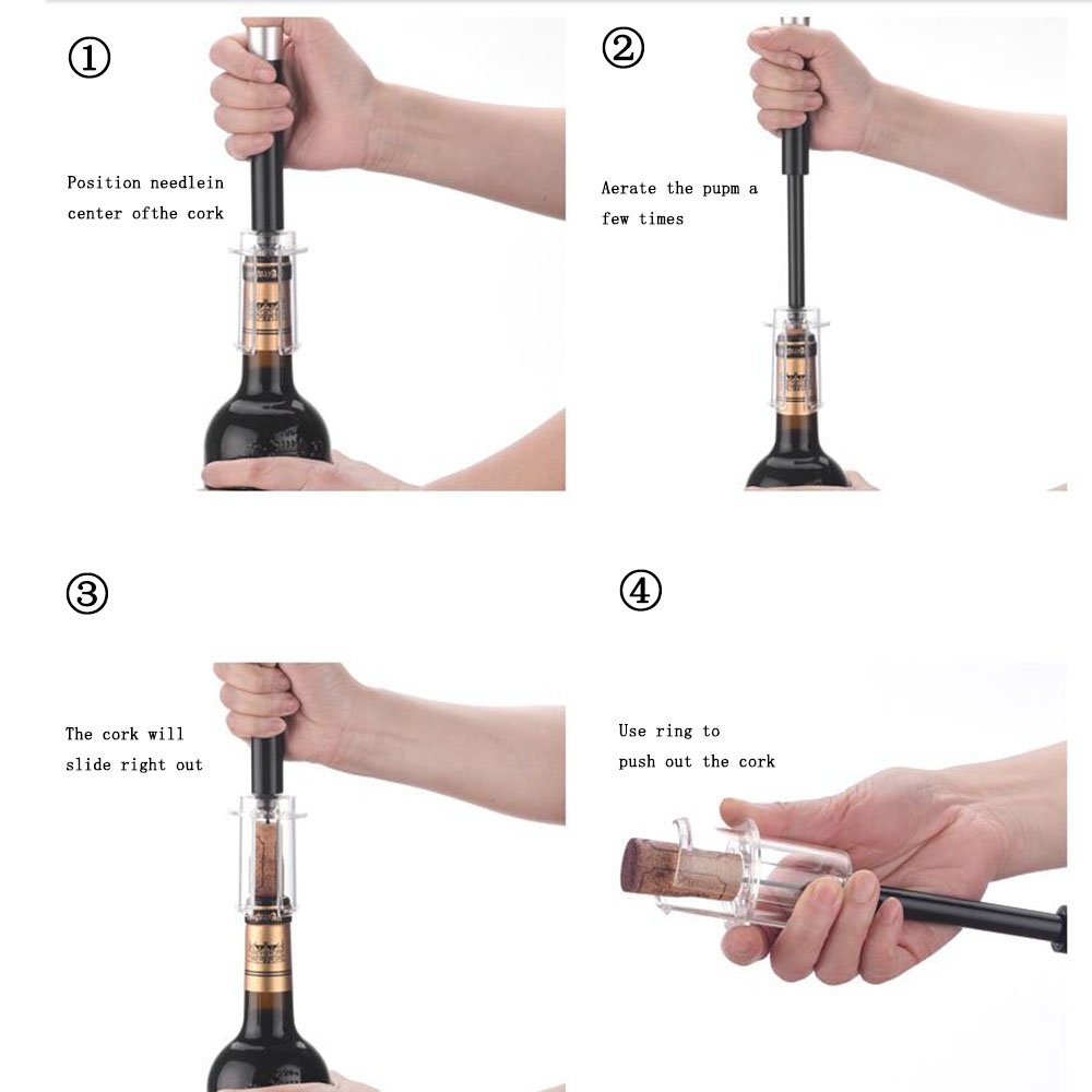 - Koristi snagu vazduha da izvadi čep iz boce bez oštećenja za nekoliko sekundi