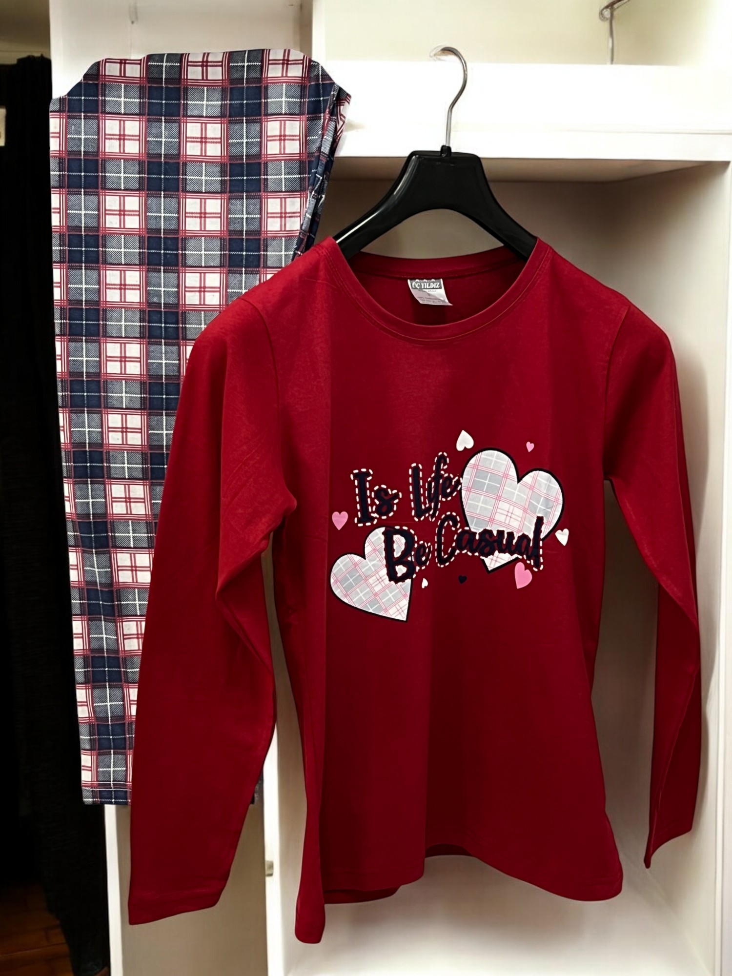 Ovaj pidžama-komplet nije samo praktičan, već i estetski privlačan – moderan dizajn i nežne boje čine ga idealnim izborom za svaku ženu koja želi da se oseća lepo i opušteno čak i kod kuće. Bilo da ga nosite tokom hladnih večeri uz omiljenu knjigu ili dok uživate u jutarnjoj kafi, KOD 1188 pidžama će postati vaš omiljeni saveznik za udoban san i trenutke relaksacije.